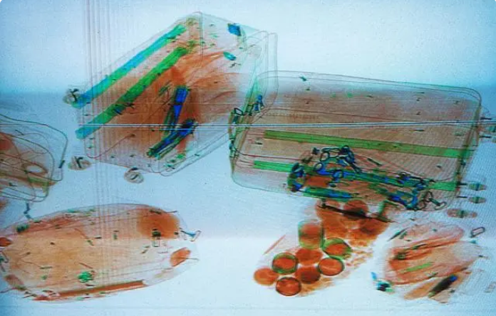 违禁品在安检机上的成像图,通常会呈现出不同的颜色。一般来说,金属物品会呈现蓝色或黑色,而液体和塑料制品则可能呈现绿色或橙色。然而,由于不同物品的材料、形状和厚度等因素,其成像颜色也会有所差异。因此,安检员需要掌握各种违禁品的成像特点,才能准确判断物品是否安全。